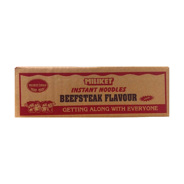 MILIKET Beefsteak Cup Instant Noodles are a flavorful and convenient option for everyday meals. Packed in 12 x 60g, great for retail or home use.